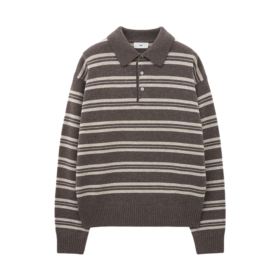 알렌느 스트라이프드 울 코튼 폴로 니트 브라운