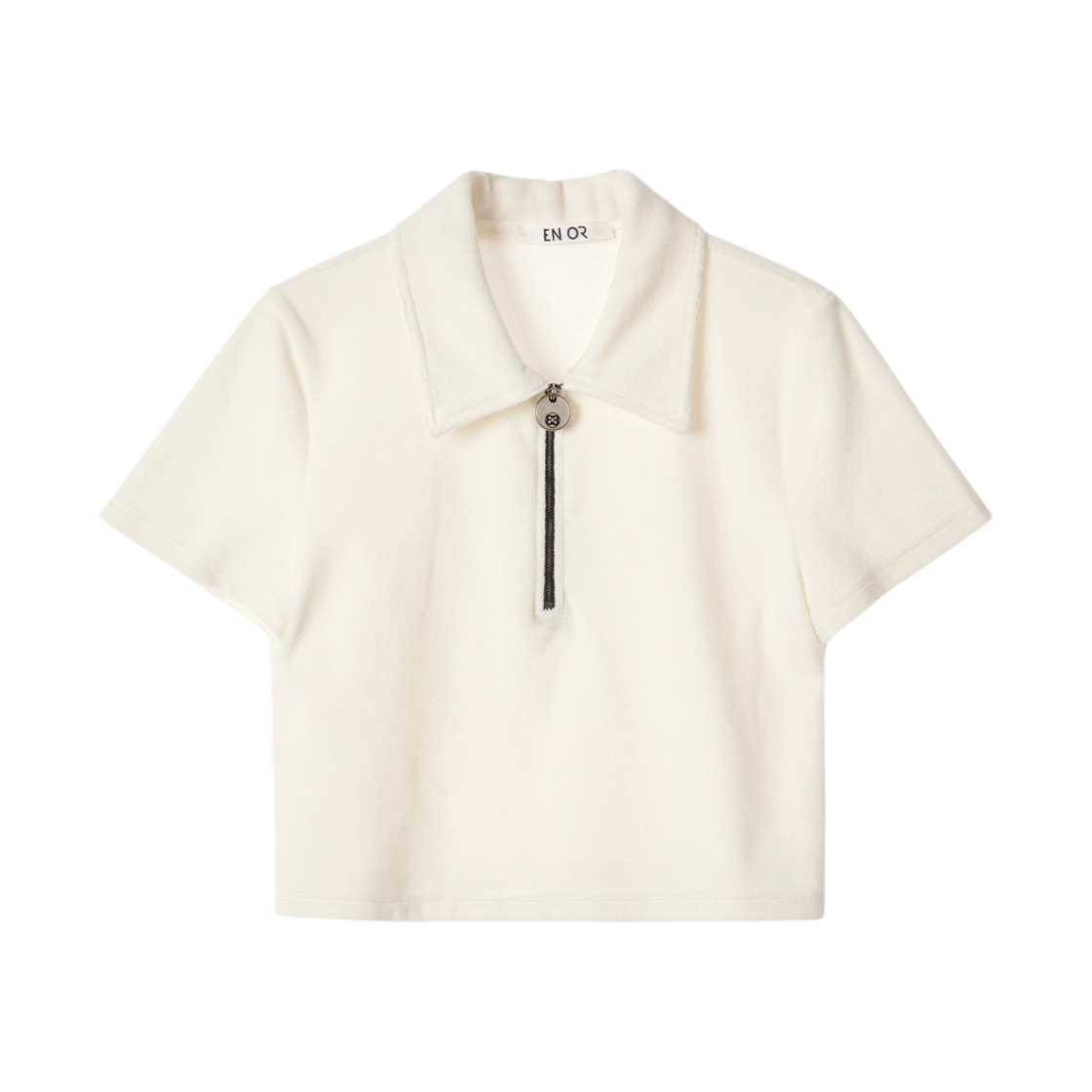 엔오르 우먼 벨루어 집업 폴로 탑 아이보리