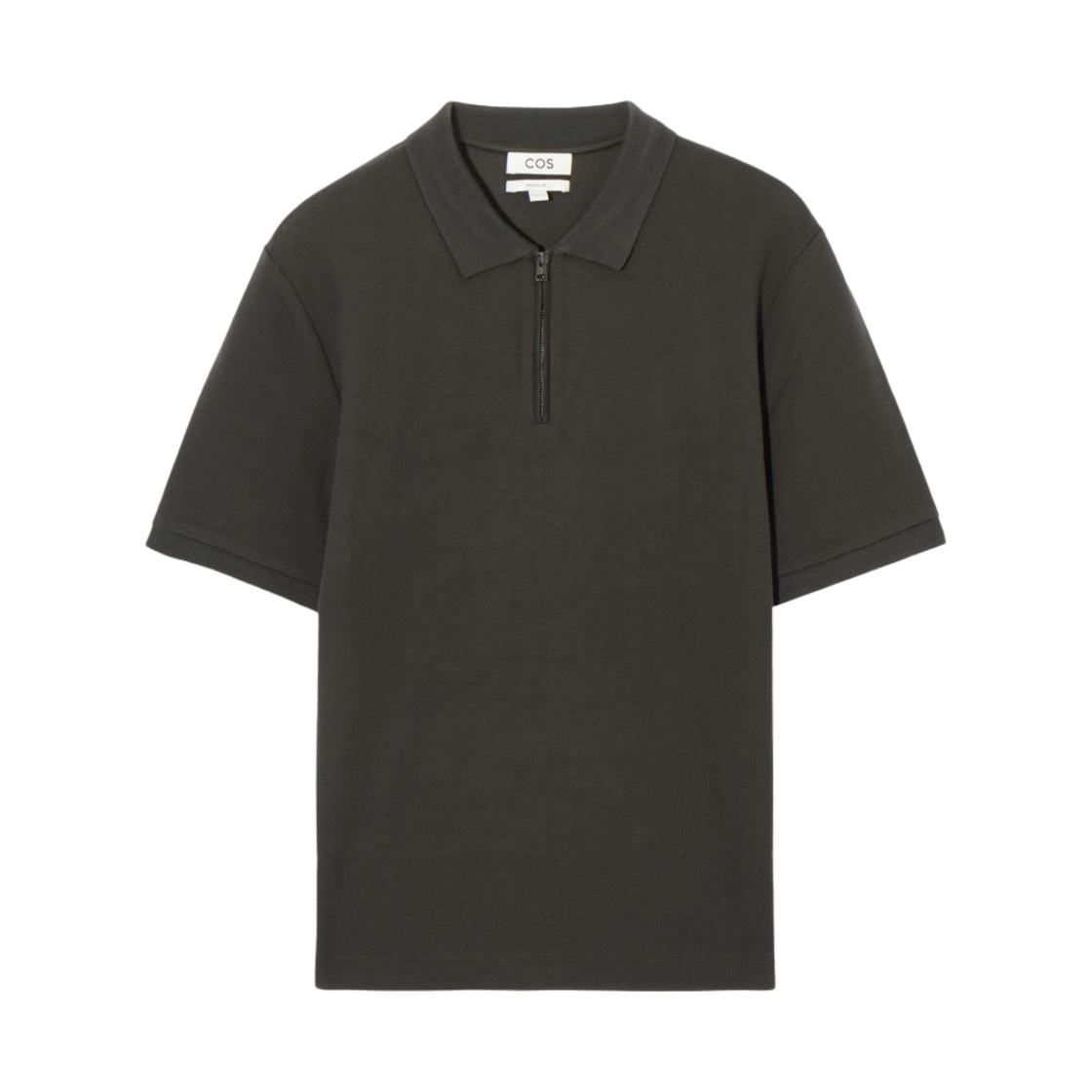 코스 코튼 피케 하프 집업 폴로 셔츠 다크 그린