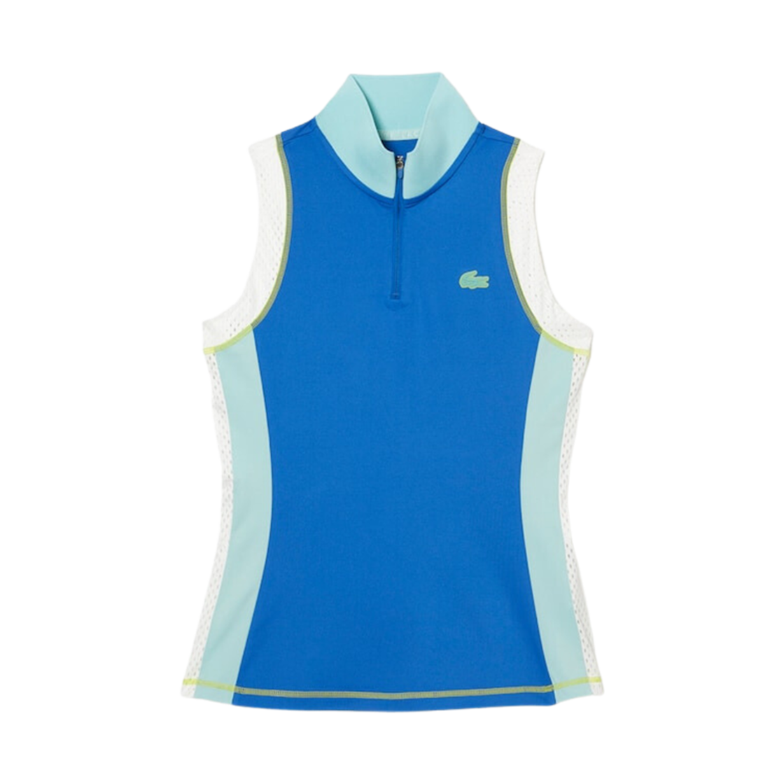 (W) 라코스테 테니스 집 업 슬리브리스 폴로 셔츠 블루 라이트 그린 화이트