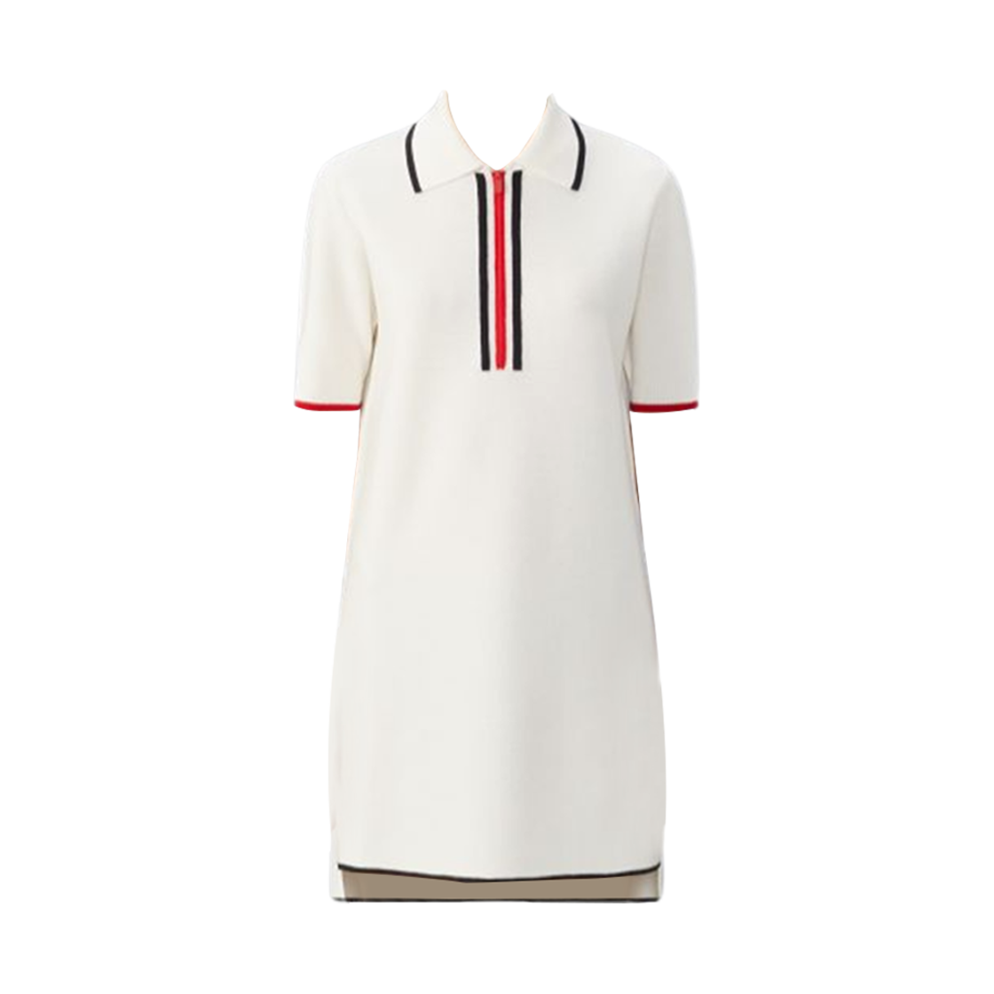 (W) 톰브라운 메리노 울 밀라노 스티치 집업 폴로 드레스 화이트