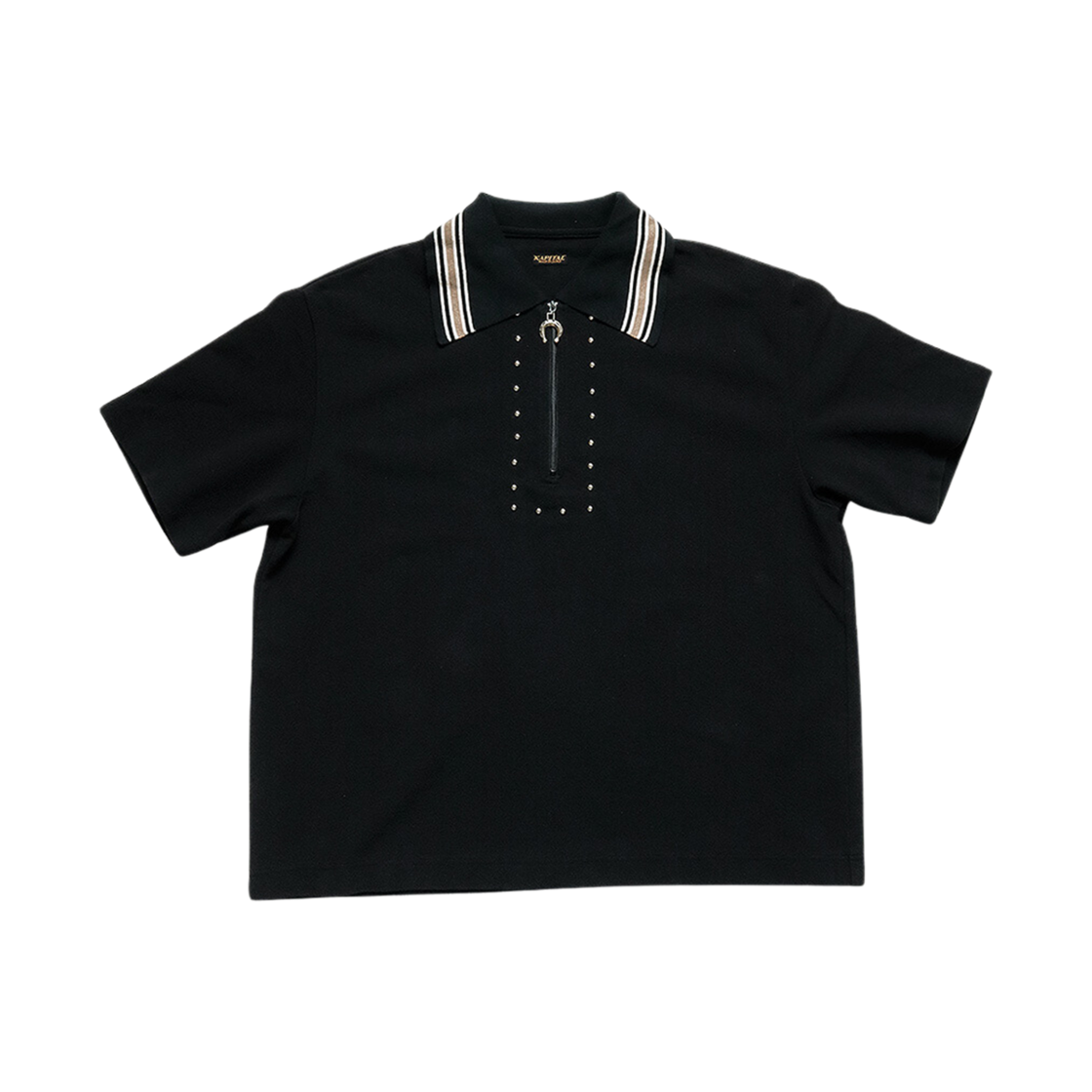 캐피탈 타이틀리 우븐 피케 랭글 칼라 집업 푸에블로 폴로 블랙