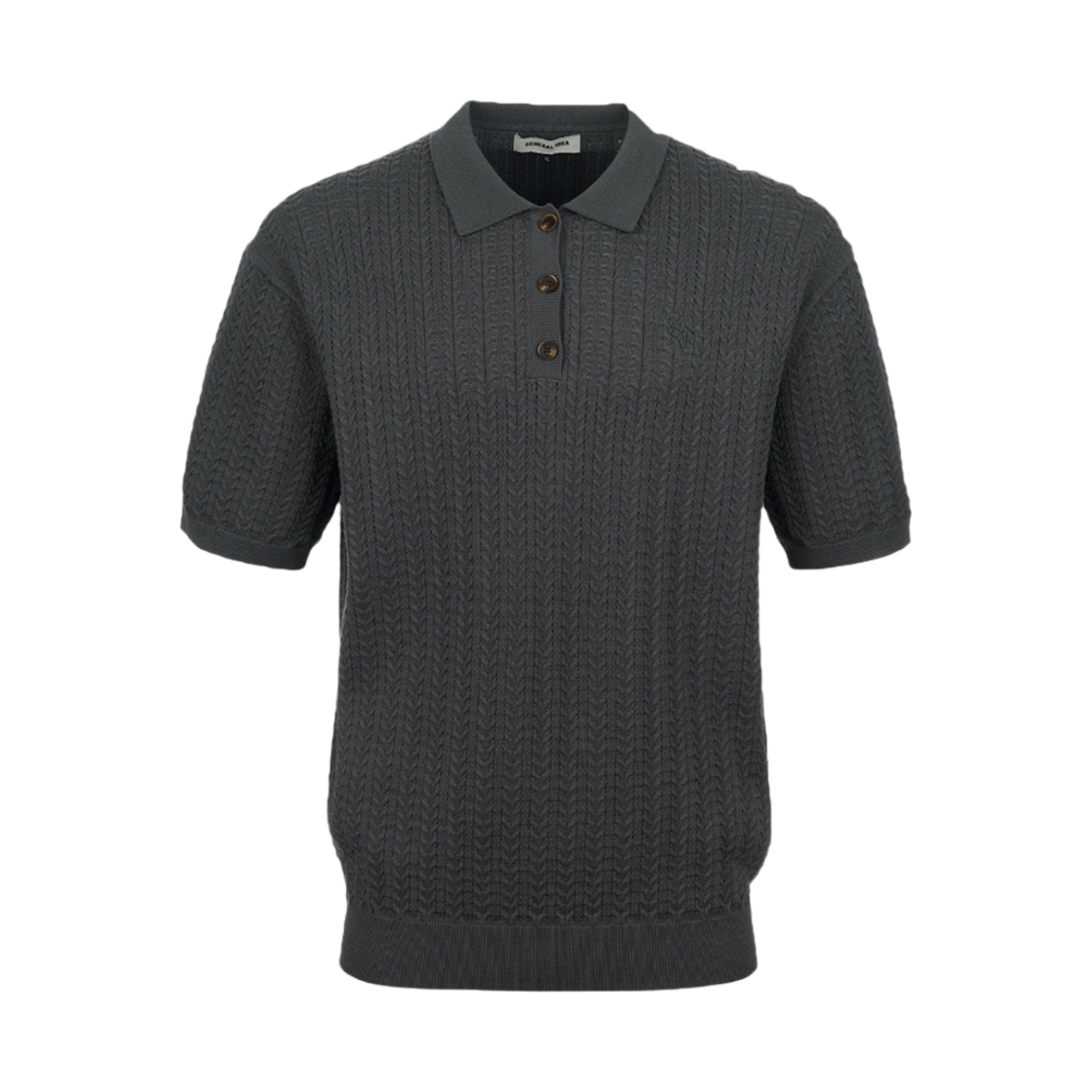 제너럴아이디어 맨 펀칭 케이블 폴로 하프 니트 차콜