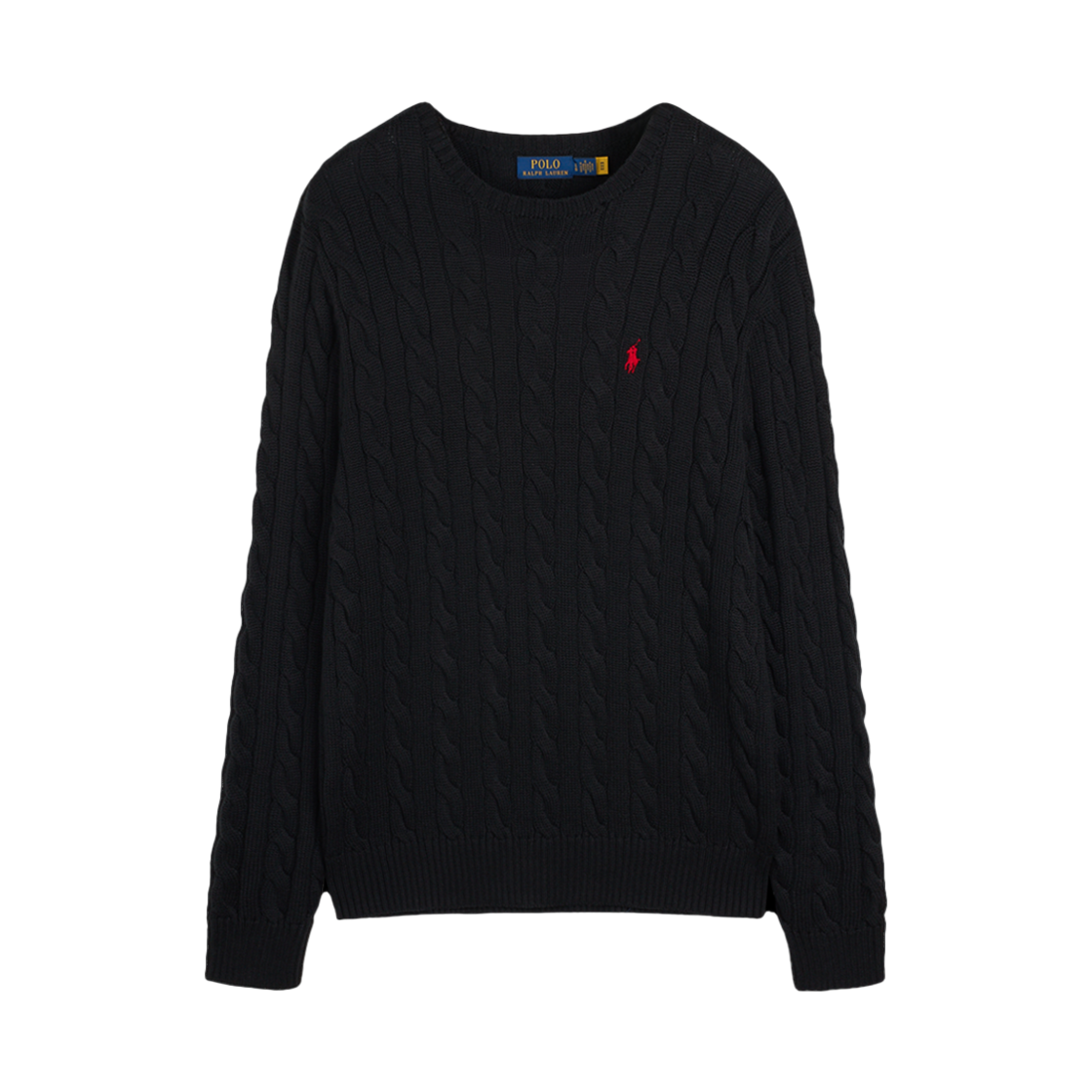 폴로 랄프 로렌 케이블 니트 코튼 스웨터 블랙