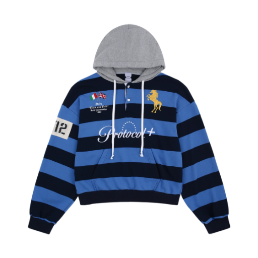 프로토콜 인덱스 스트라이프 폴로 후드 블루