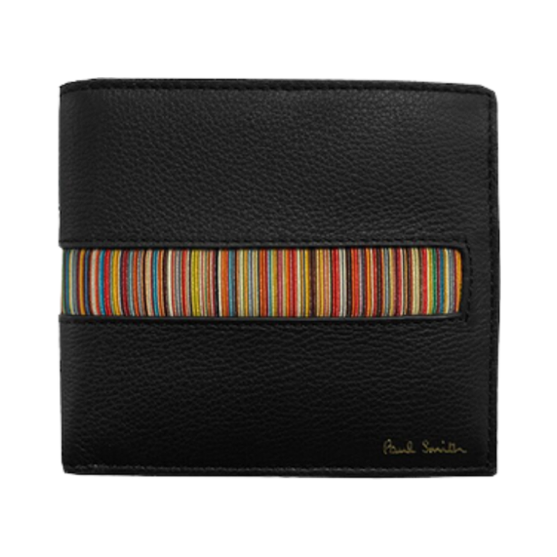 폴 스미스 레더 시그니처 스트라이프 인테리어 빌폴드 월렛 블랙