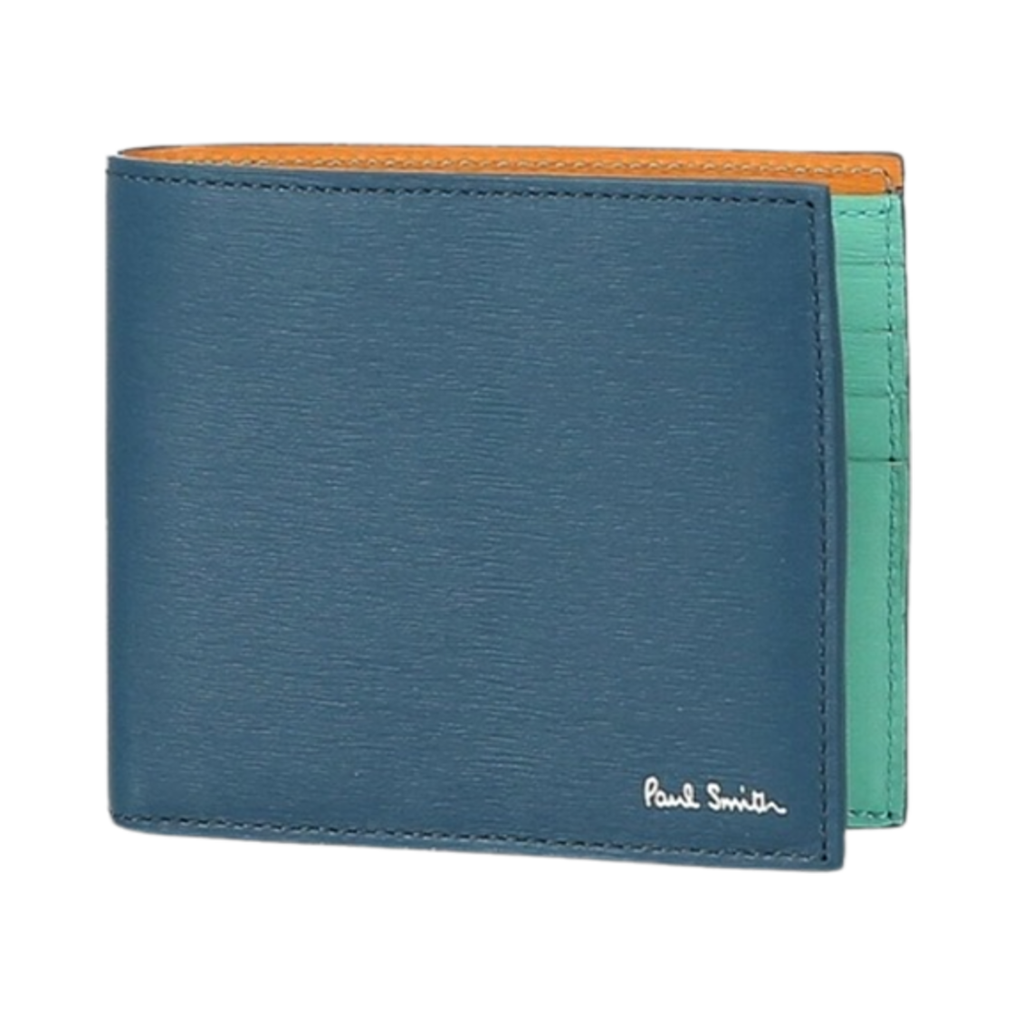 폴 스미스 레더 시그니쳐 스트라이프 인테리어 빌폴드 월렛 틸 블루