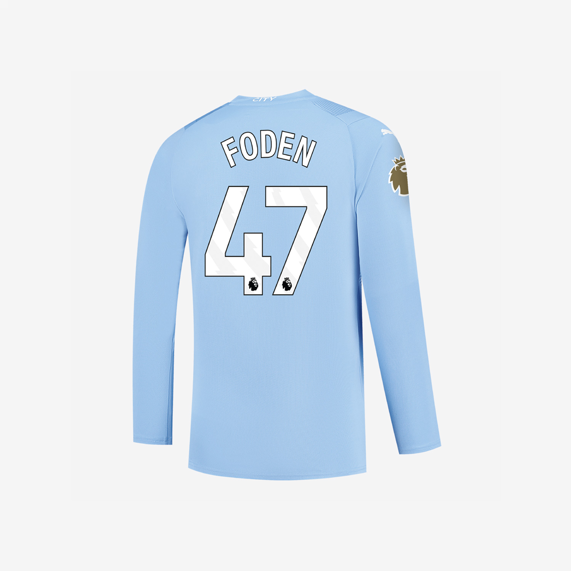 푸마 맨체스터 시티 2023/24 홈 롱슬리브 저지 팀 라이트 블루 필 포든 (프리미어 리그 풀 마킹 버전)