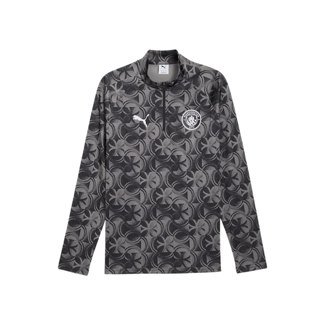푸마 맨체스터 시티 2025/26 프리 매치 쿼터 집 탑 블랙 플랫 다크 그레이 (논 마킹 버전)