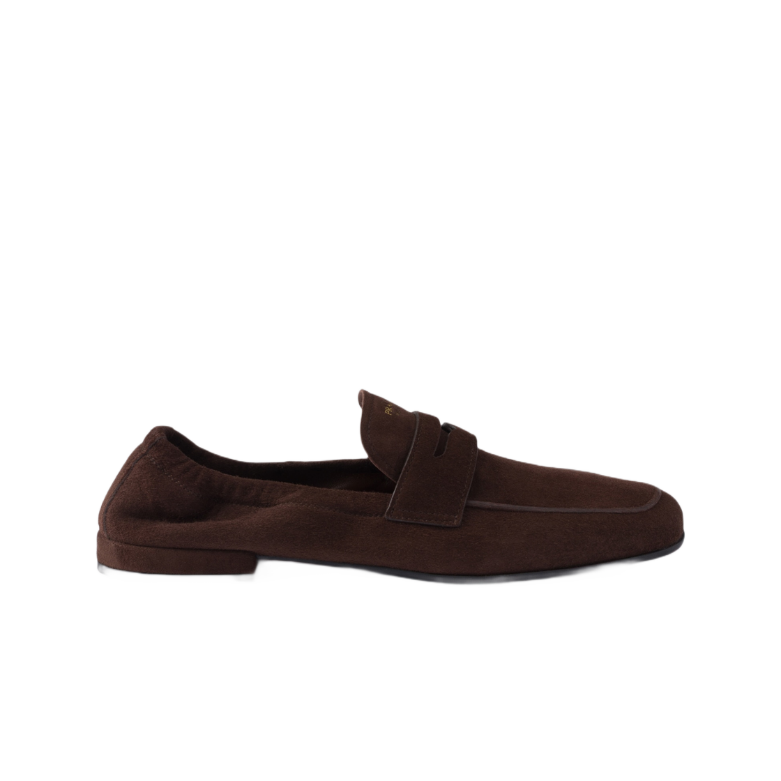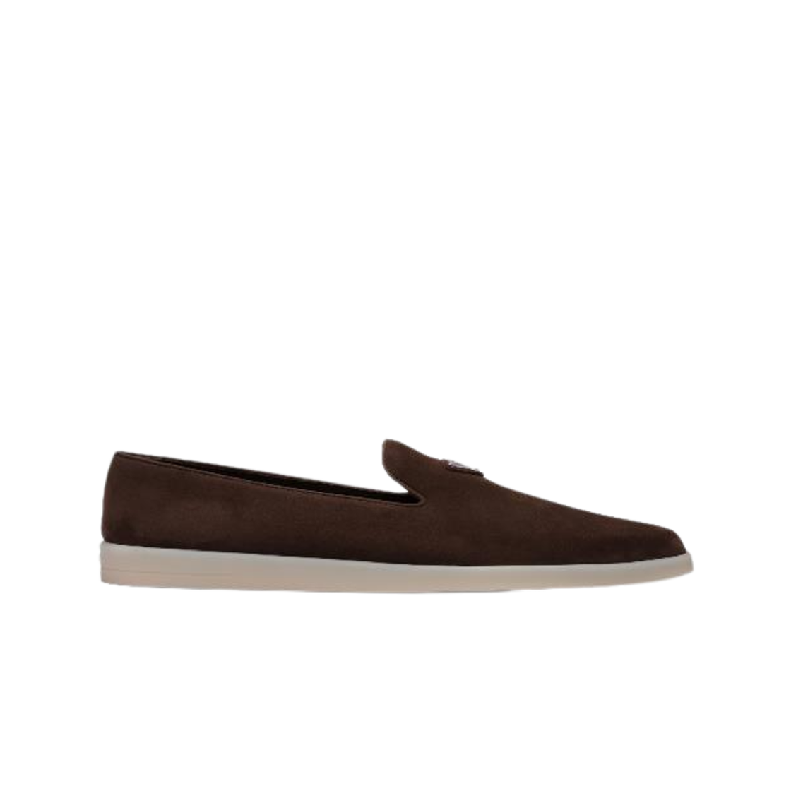 프라다 트라이앵글 로고 스웨이드 로퍼 다크 브라운