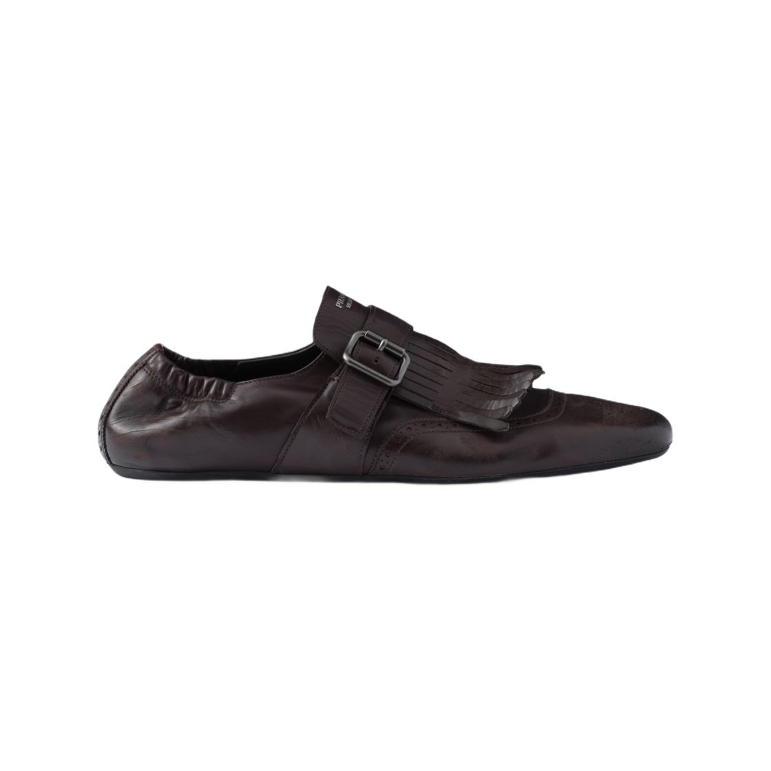 프라다 셔플 프린지 몽크 스트랩 슈즈 다크 브라운