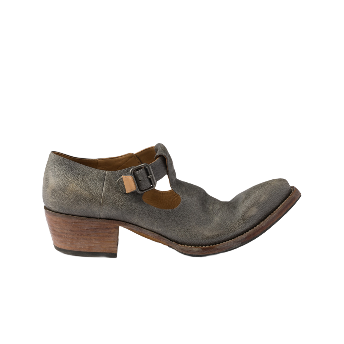 프라다 앤틱 레더 슈즈 버클 머큐리 그레이