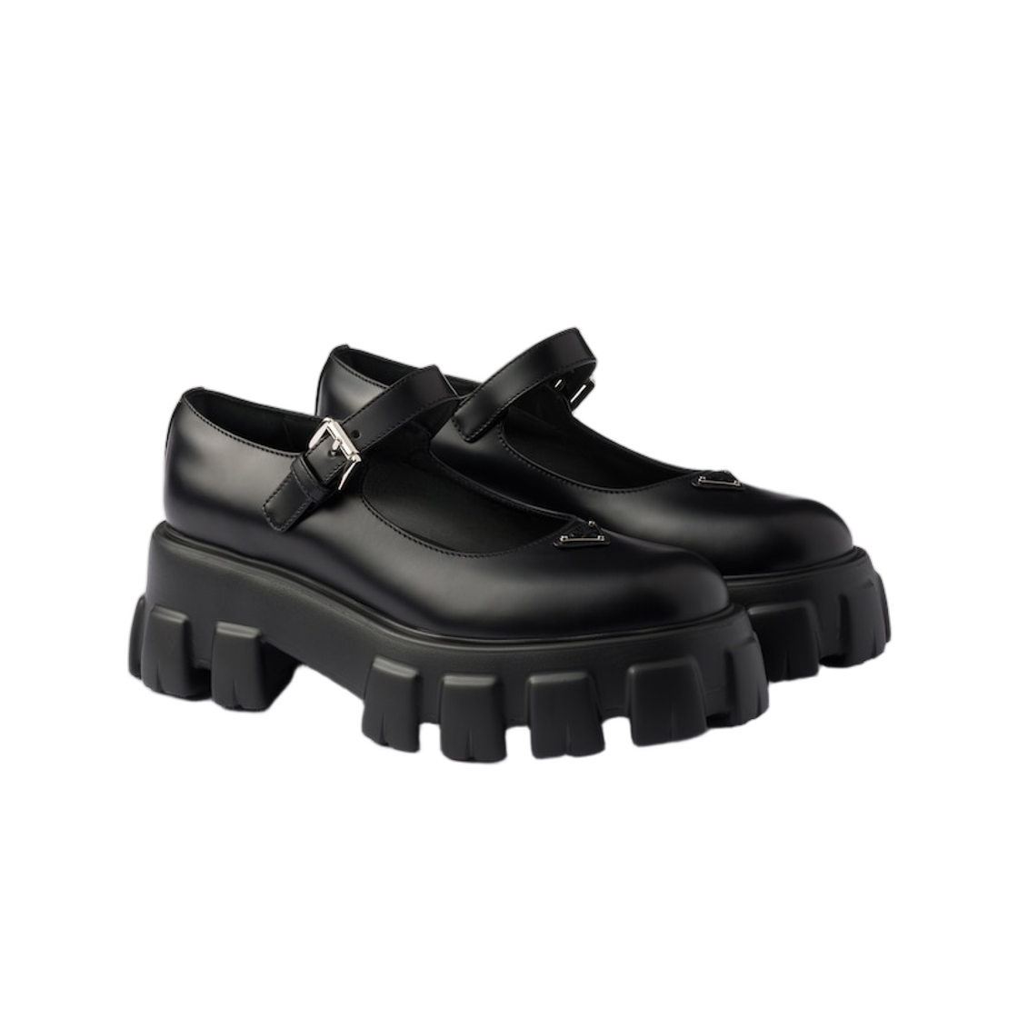 (W) 프라다 브러쉬드 레더 모놀리스 메리 제인 블랙
