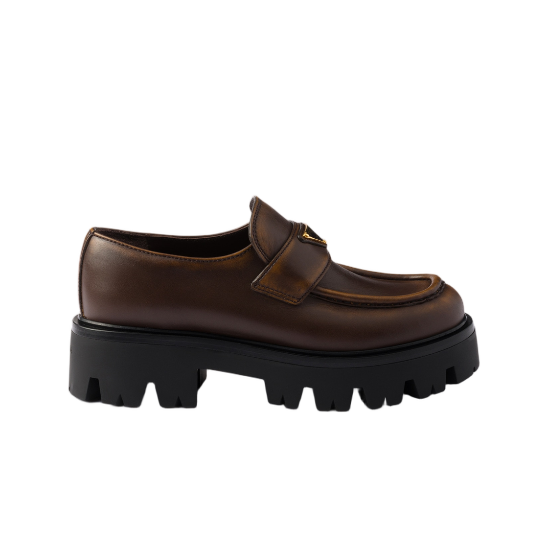 프라다 셔플 앤틱 레더 로퍼 다크 브라운