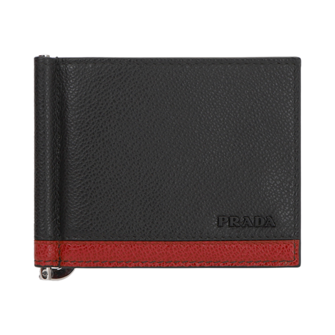 프라다 카프 레더 머니 클립 블랙 파이어리 레드