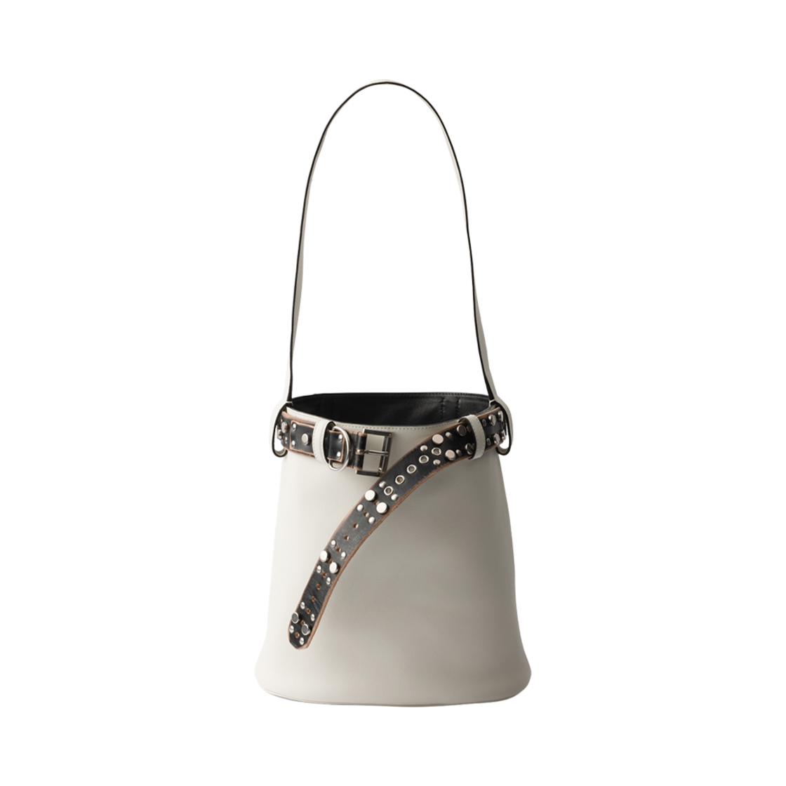 프라다 버클 레더 버킷백 스터디드 벨트 화이트 블랙
