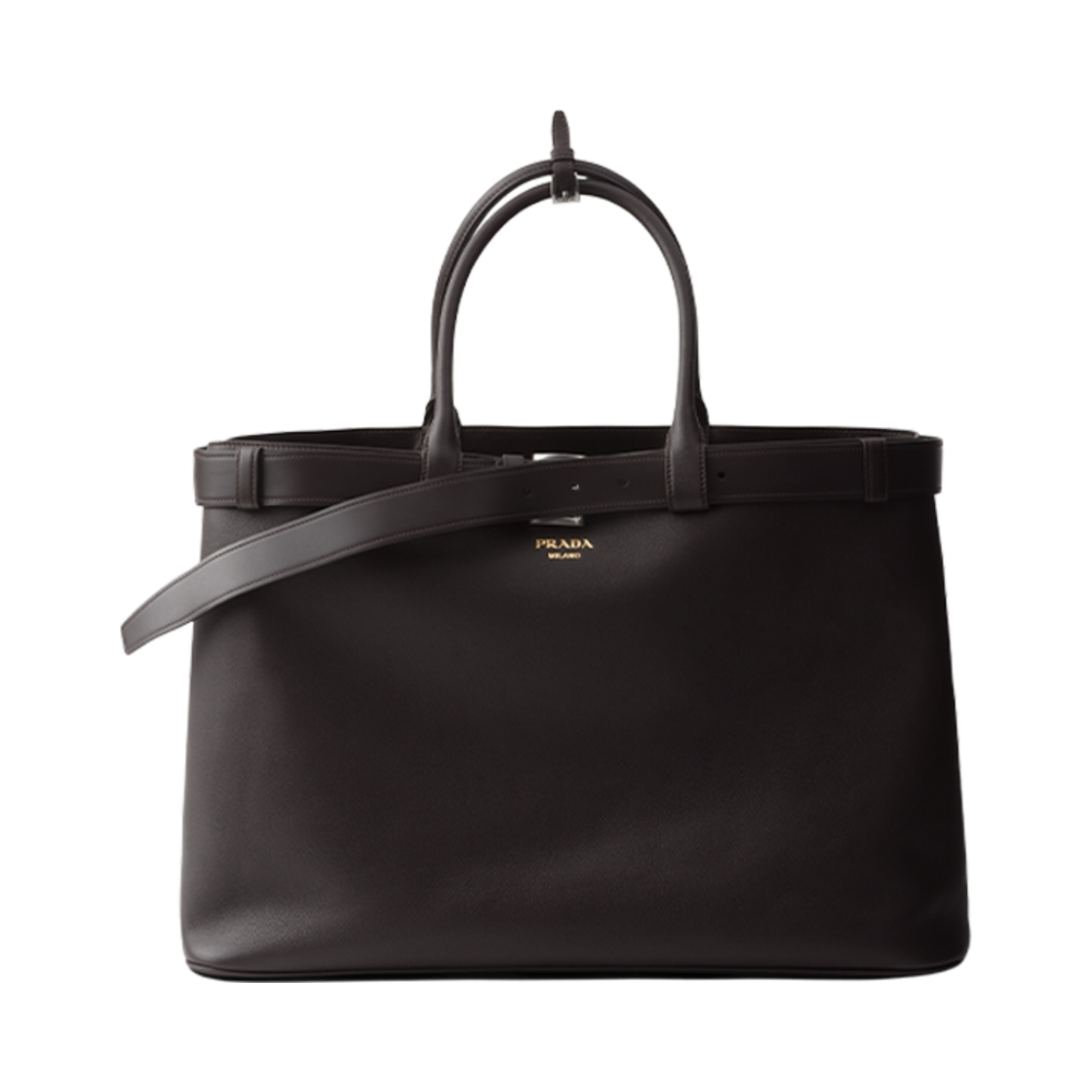프라다 버클 미디움 레더 핸드백 벨트 블랙