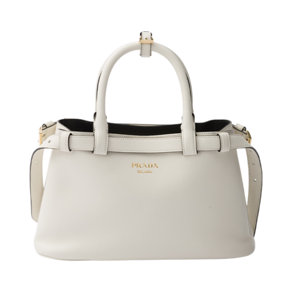프라다 버클 스몰 레더 핸드백 더블 벨트 화이트 블랙