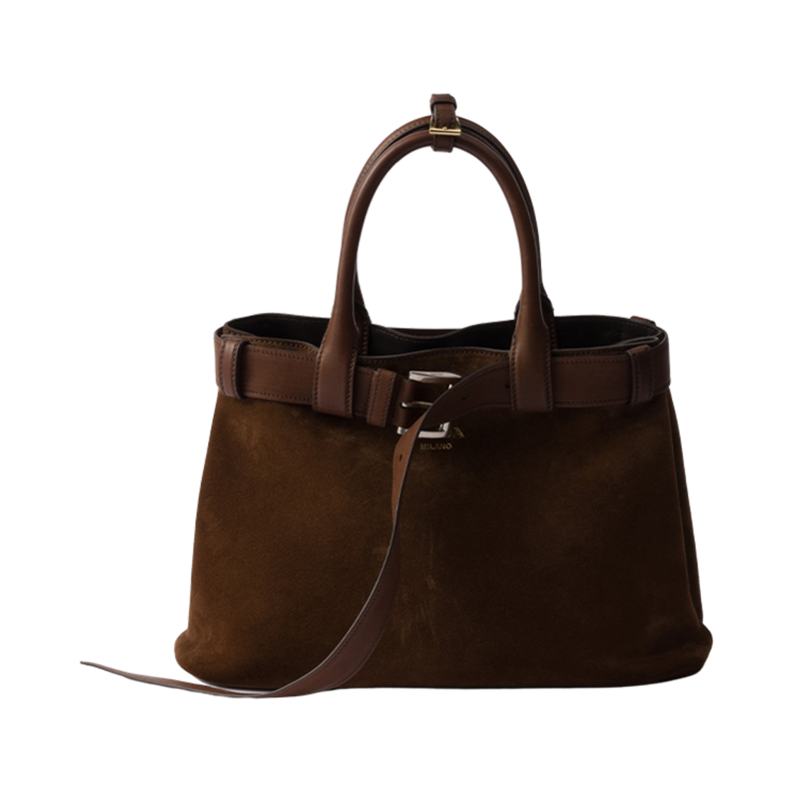 프라다 미디움 프라다 버클 스웨이드 백 벨트 코코아 브라운