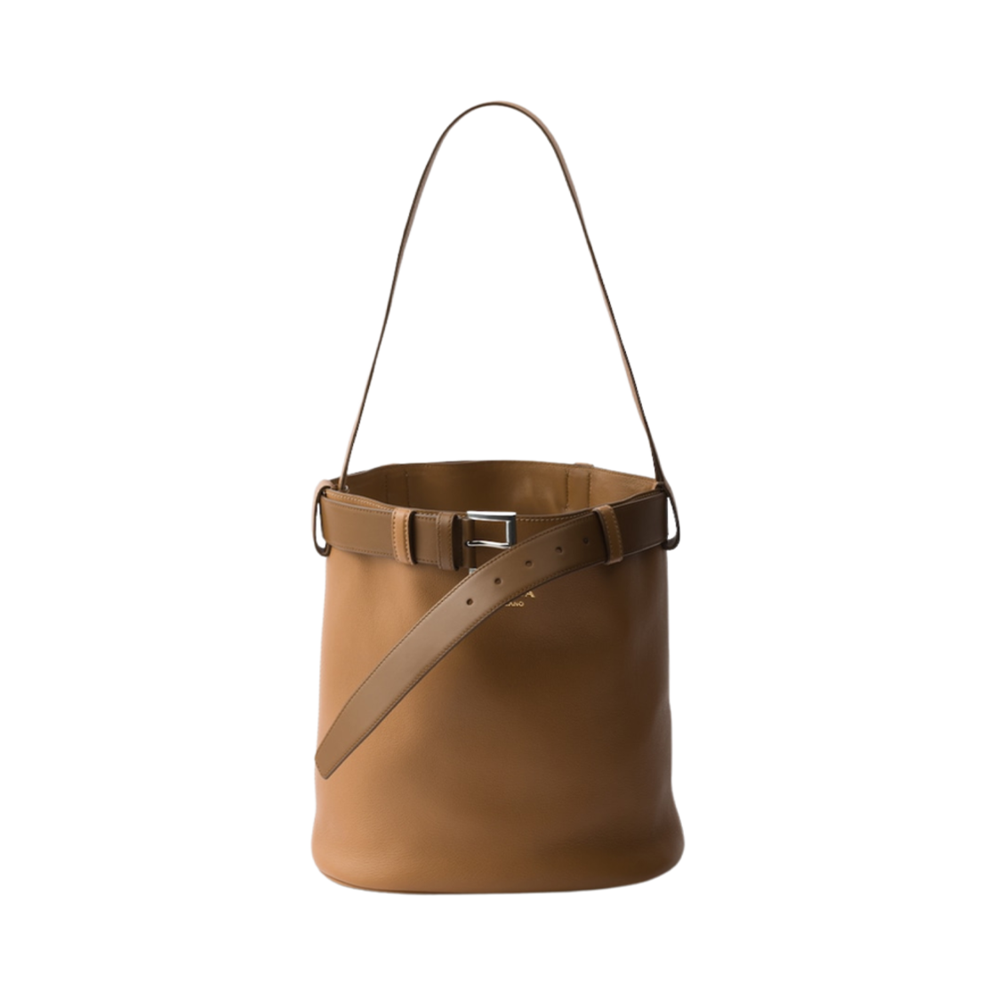 프라다 버클 레더 버킷백 벨트 캐러멜