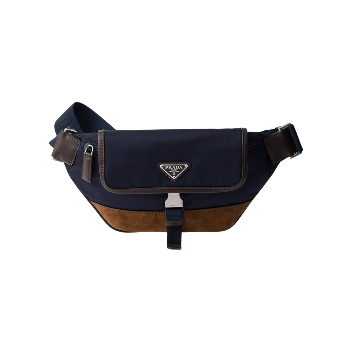 프라다 리나일론 스웨이드 벨트백 블루 커피