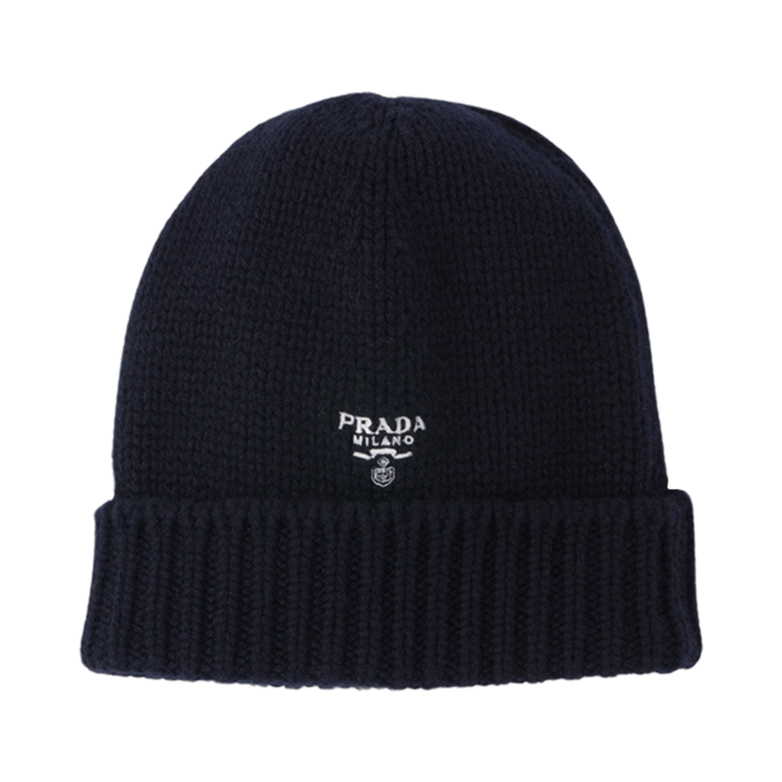 프라다 울 앤 캐시미어 비니 네이비 블루 러스트