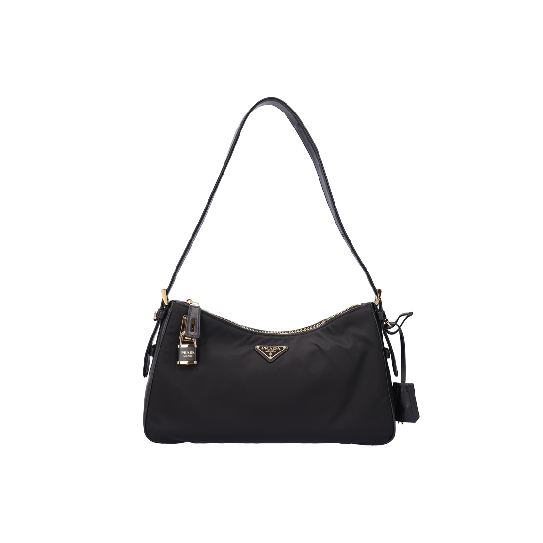프라다 1NE204 리에디션 블랙 리나일론 테수토 사피아노 은장 트라이앵글 미니 호보 숄더백