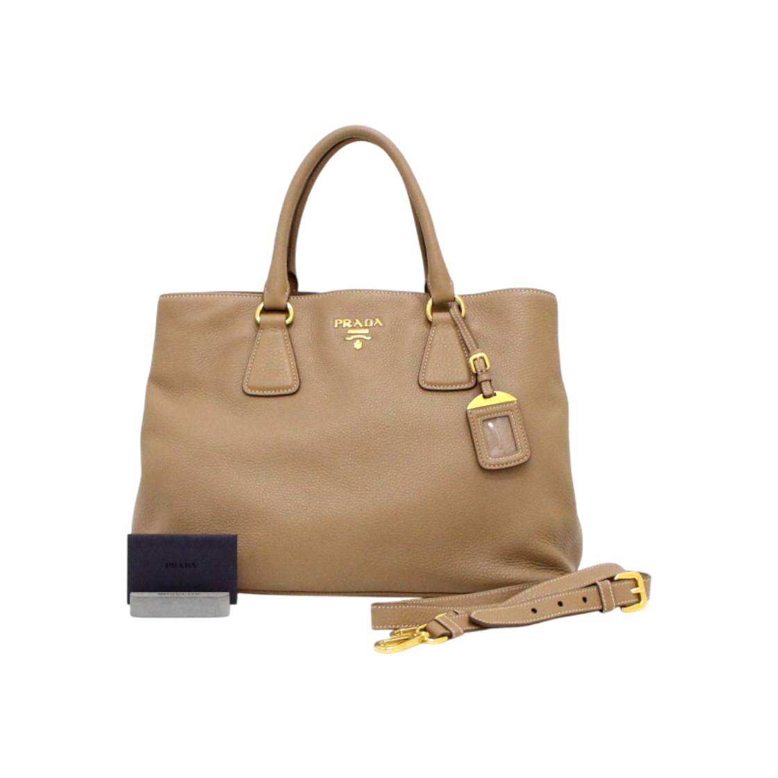 프라다 BN2794 브라운 골드 로고 비텔로 다이노 토트백 겸 숄더백 aa57188