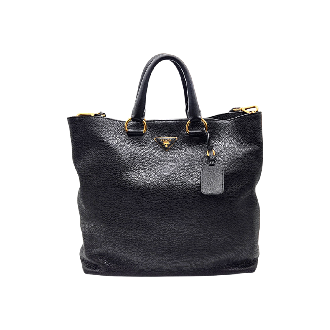 프라다 1BA104 블랙 비텔로 피닉스 레더 금장 로고 토트백 겸 숄더백 aa57526