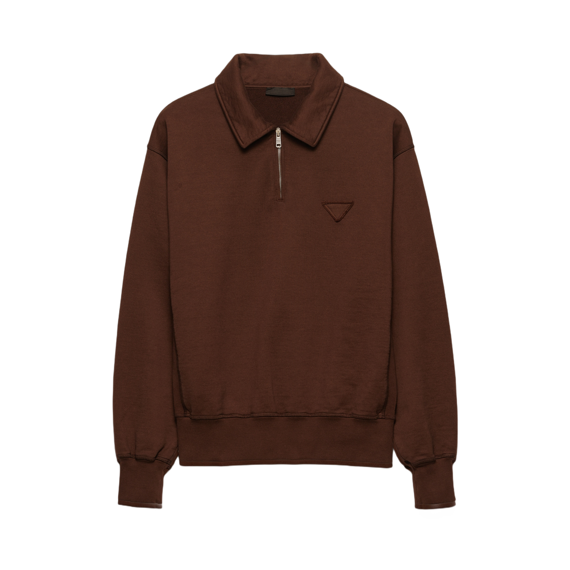 프라다 코튼 플리스 폴로 셔츠 코코아 브라운