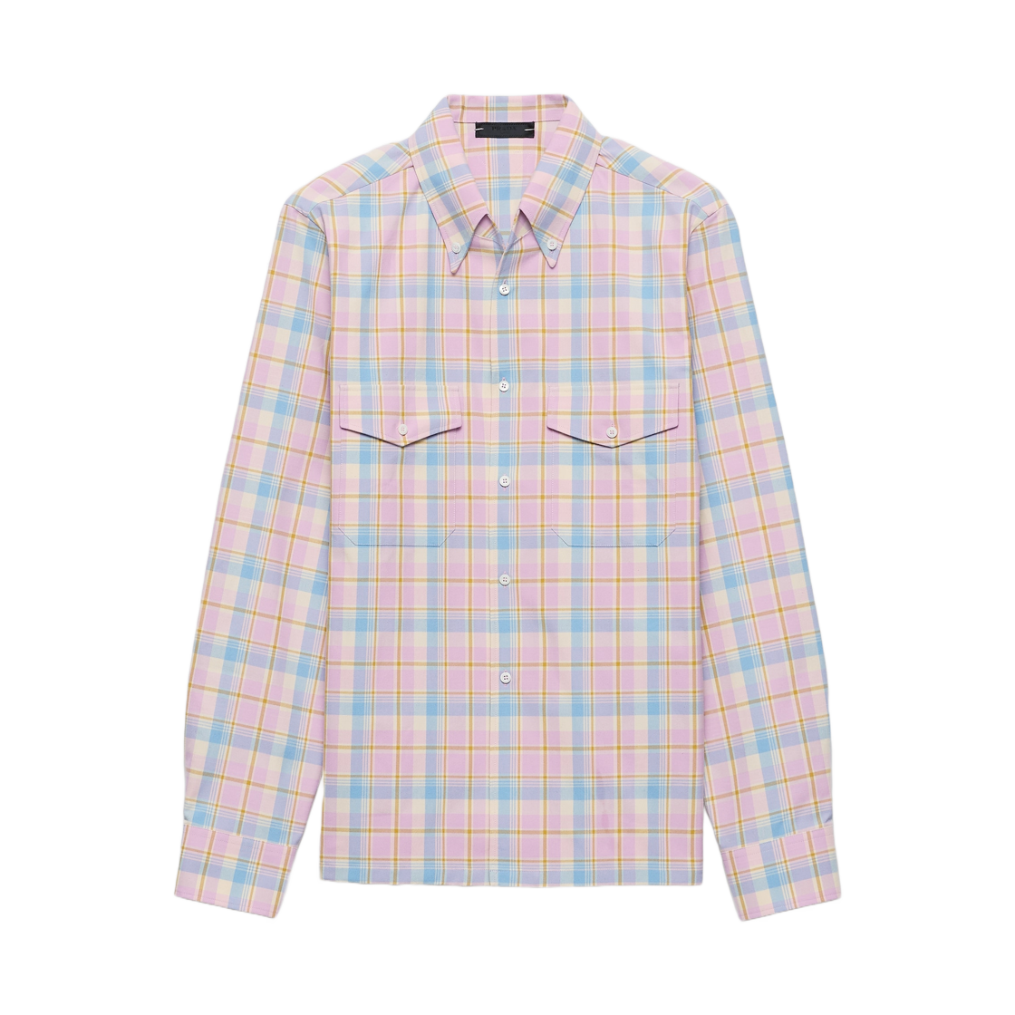 프라다 체크 코튼 버튼 다운 셔츠 앨러배스터 핑크