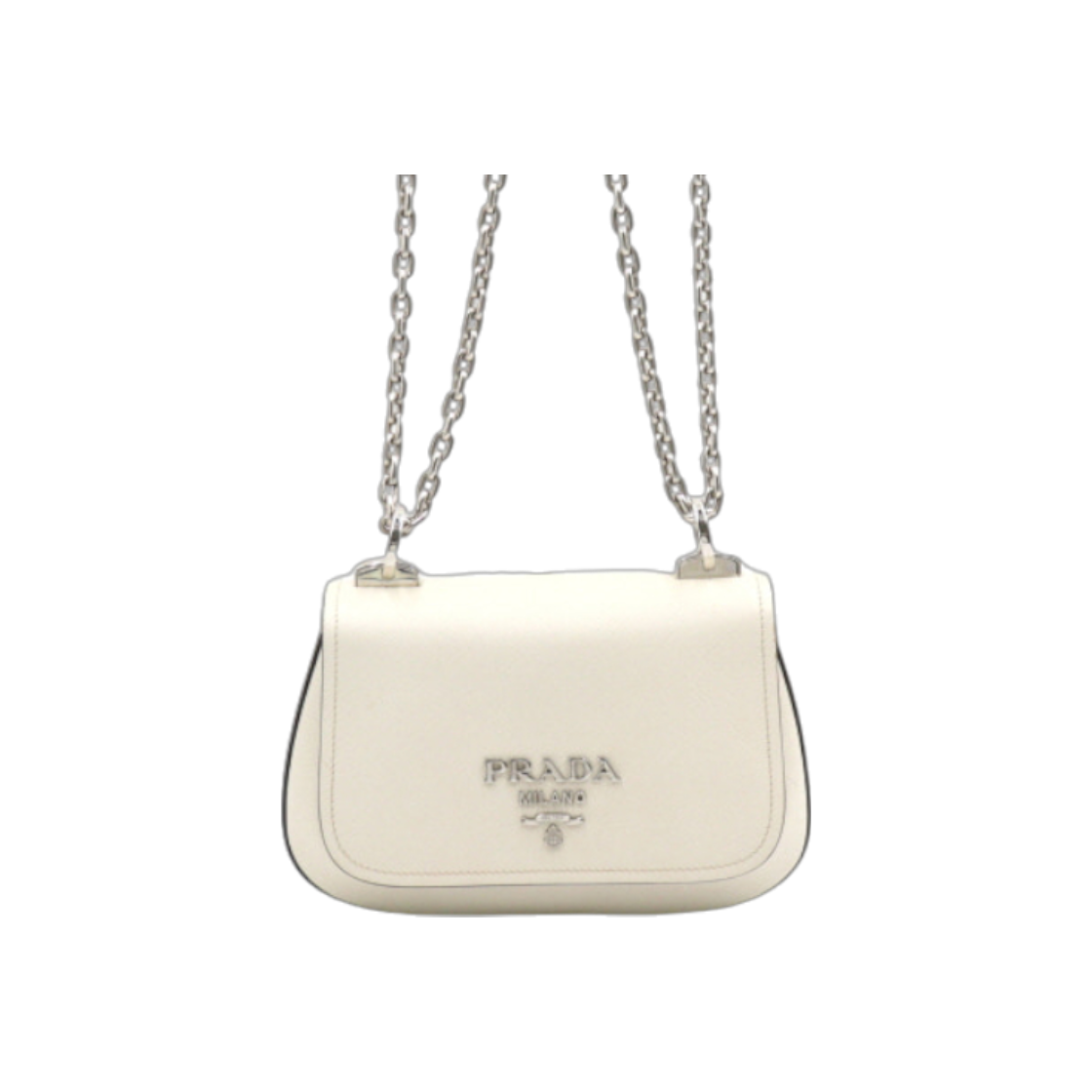 프라다 1BD275 사피아노 화이트 은장 로고 플랩 체인 숄더백 겸 크로스백 aa48731