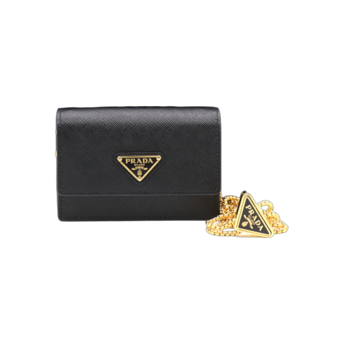 프라다 1MR034 사피아노 레더 금장 로고 체인 숄더 스트랩 카드 홀더 크로스백 aa39160