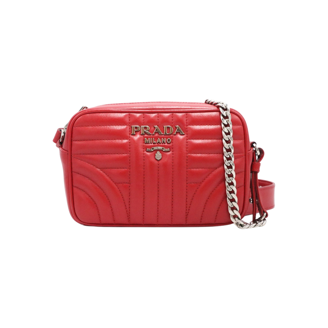 프라다 1BH083 레드 소프트 카프스킨 다이아그램 은장 메탈 레터링 체인 숄더백
