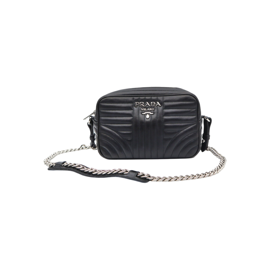 프라다 1BD108 다이어그램 블랙 미듐 은장체인 숄더백 겸 크로스백 aa50608