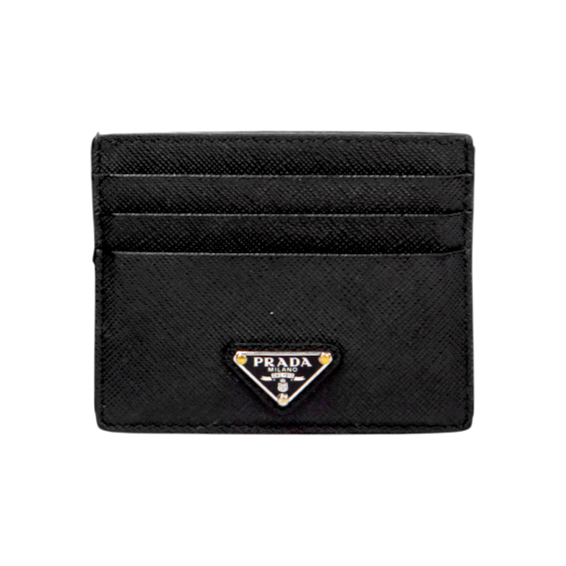 프라다 사피아노 레더 트라이앵글 로고 카드 지갑 블랙 골드