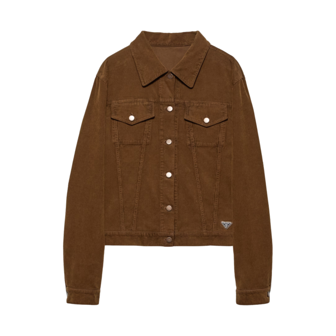 프라다 미디움 웨이트 코듀로이 다운 자켓 코코아 브라운
