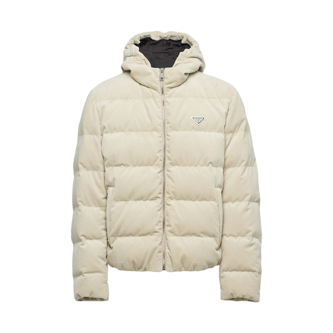 프라다 크롭 코듀로이 다운 자켓 초크 화이트