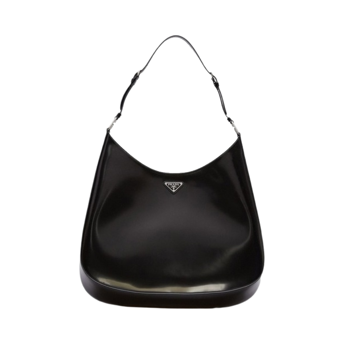 프라다 클레오 브러쉬드 레더 숄더백 블랙