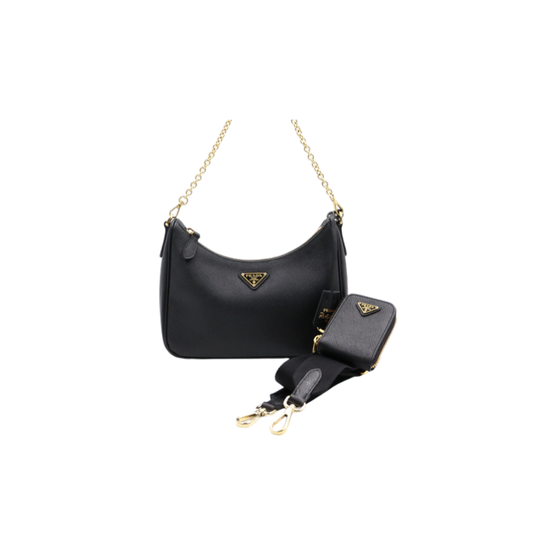 프라다 1BH204 리에디션 블랙 사피아노 멀티 호보 금장 체인 숄더백 겸 크로스백 aa51732