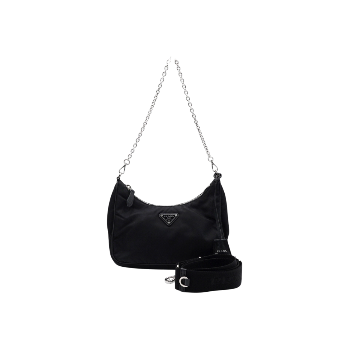 프라다 리에디션 2005 사피아노 트리밍 리나일론 미니 호보백 블랙
