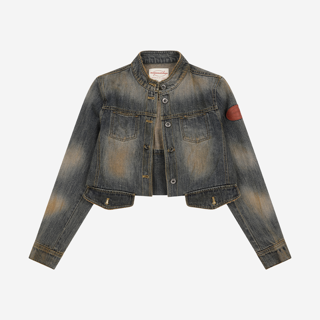 프라블럼올웨이즈 더티 워시드 폴디드 데님 트러커 자켓 워시드 블루