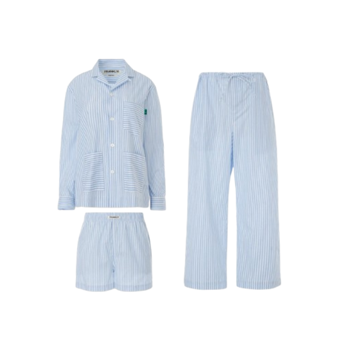 프랭클리 쓰리피스 스트라이프 파자마 셋업 블루