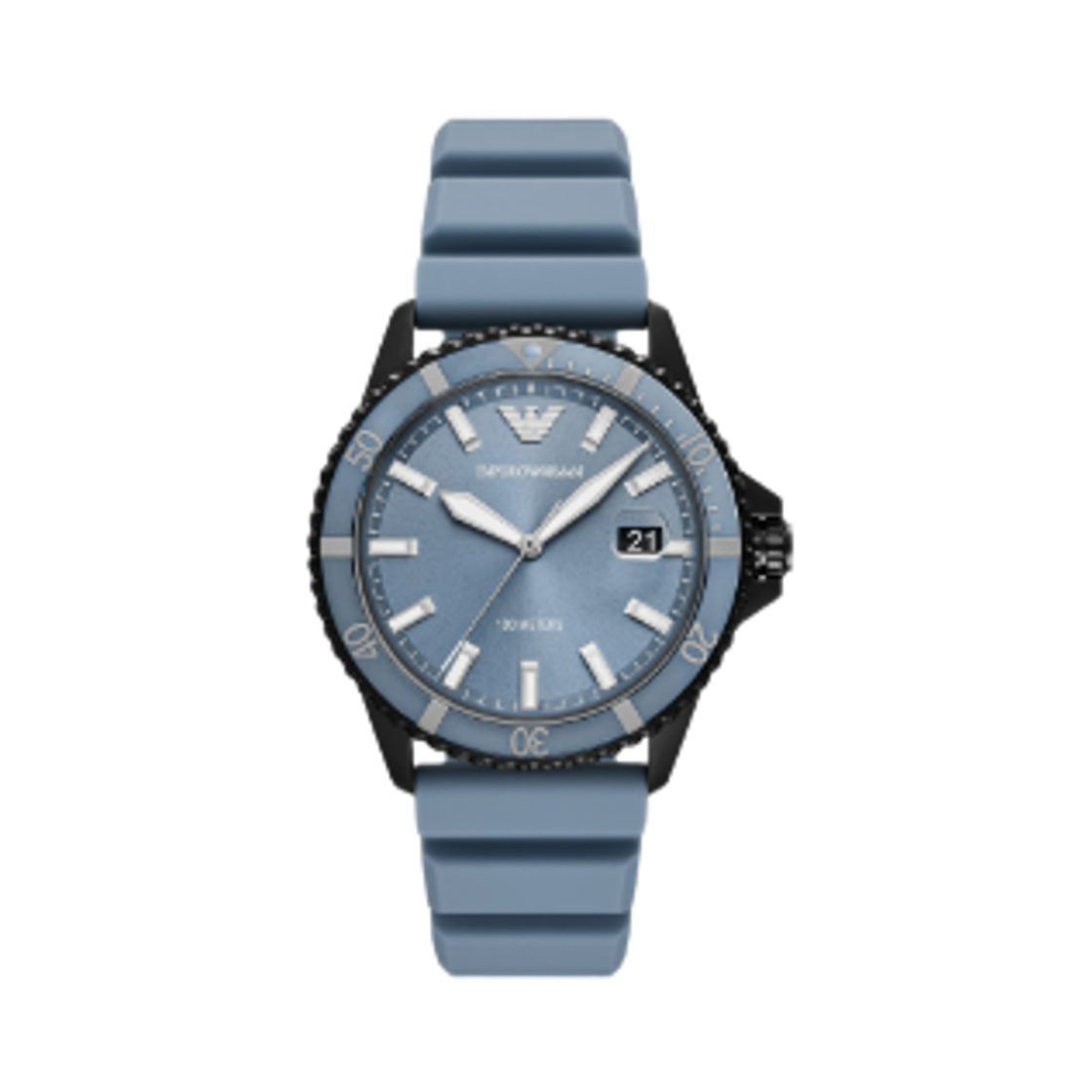 엠포리오 아르마니 월드 익스프로어 쿼츠 쓰리핸드 데이트 42mm 실리콘 블랙 블루