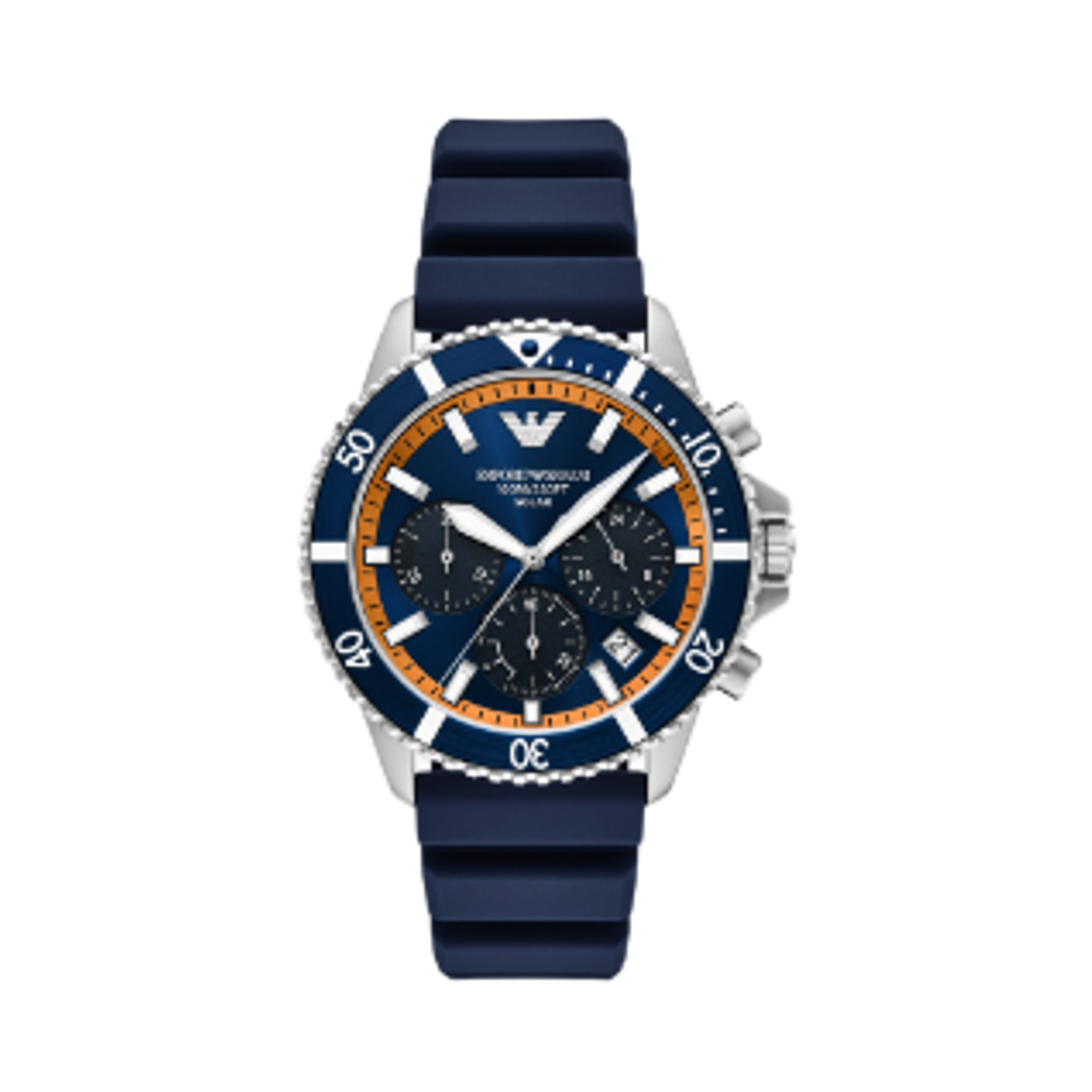엠포리오 아르마니 월드 익스프로어 솔라 크로노그래프 43mm 실리콘 실버 블루