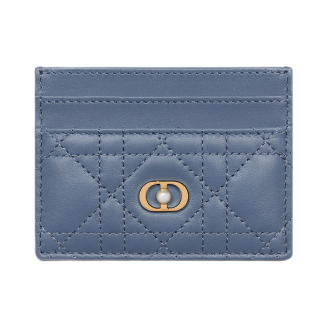 디올 졸리 프리지아 카드 홀더 까나쥬 램스킨 데님 블루