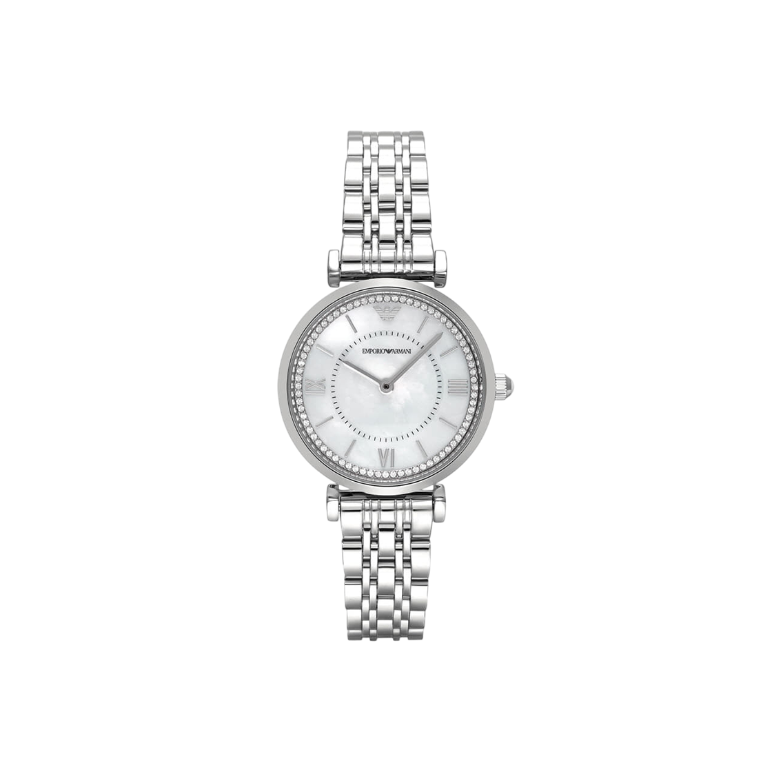 (W) 엠포리오 아르마니 지아니 32mm 메탈 시계 마더 오브 펄 실버