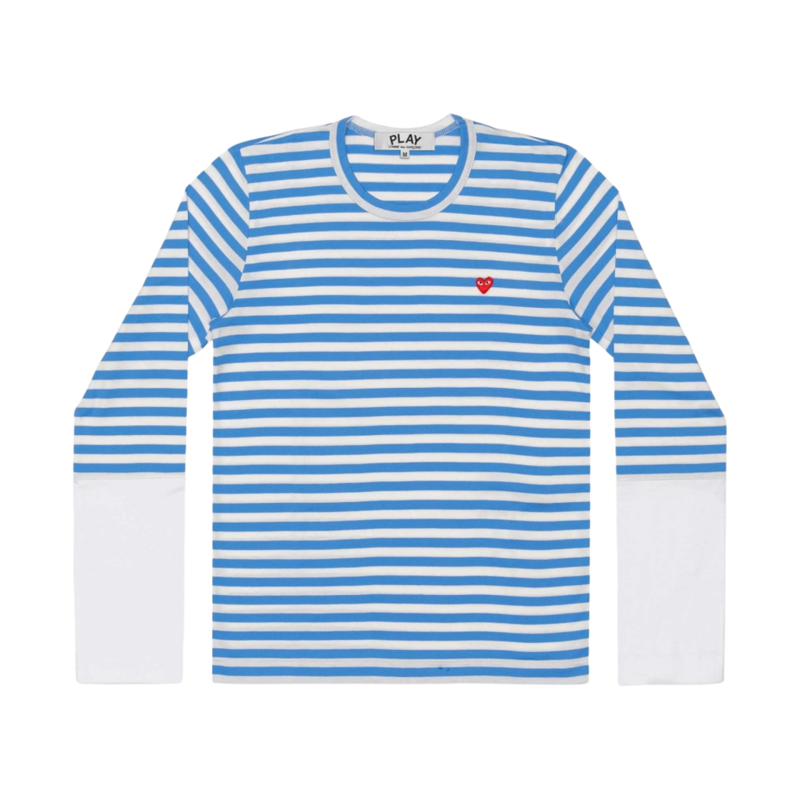 플레이 꼼데가르송 리틀 레드 하트 스트라이프 롱슬리브 티셔츠 블루 화이트