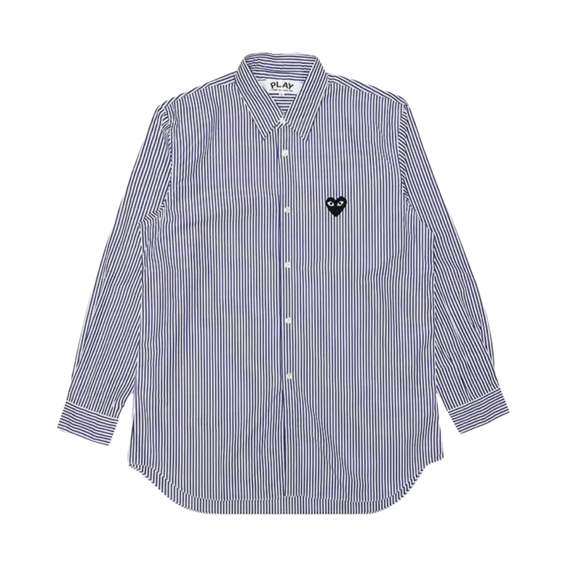 플레이 꼼데가르송 블랙 하트 스트라이프 버튼 다운 셔츠 블루