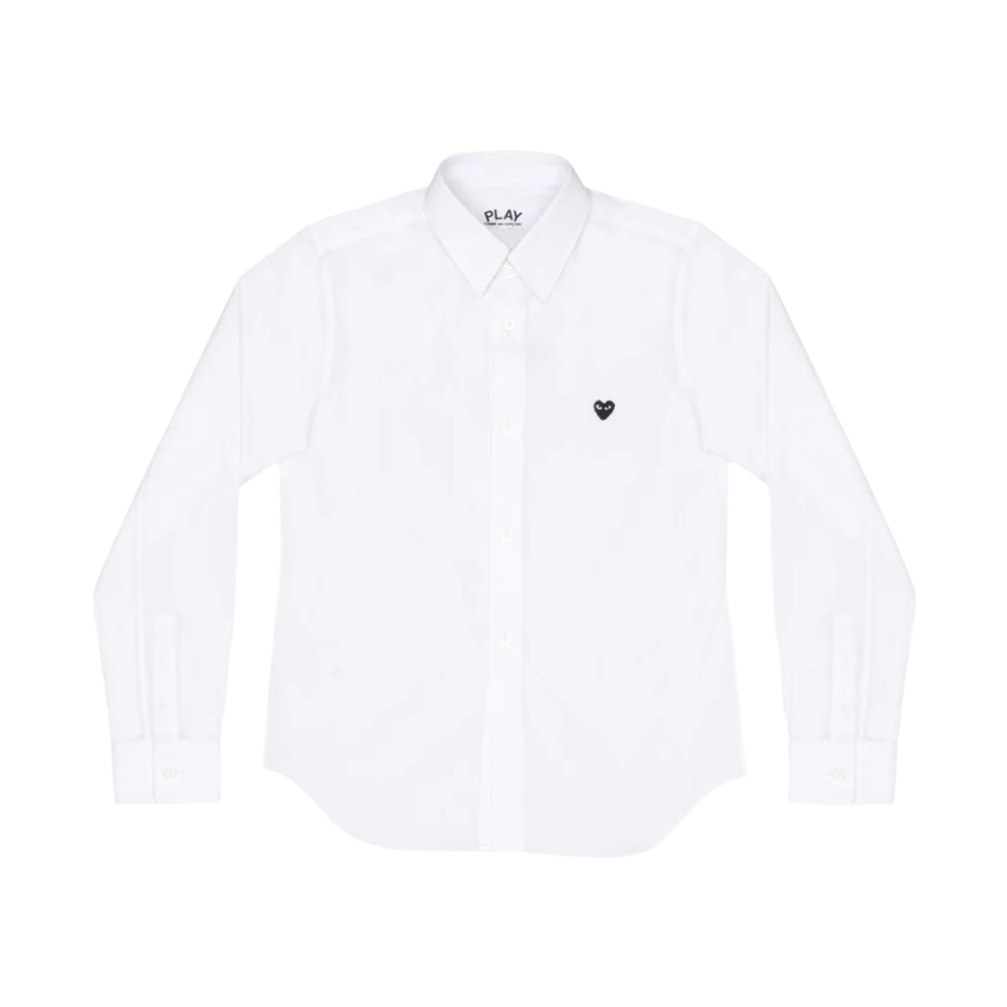 (W) 플레이 꼼데가르송 스몰 블랙 하트 버튼 업 셔츠 화이트